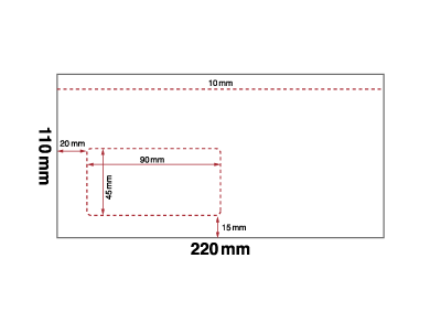 Briefumschläge sind nicht zu 100% vollflächig bedruckbar. Die Druckmaschine braucht zum anfassen des Kuverts einen sog. Greiferrand. Dieser ist in unseren Downloadvorlagen ersichtlich und kann nicht bedruckt werden. Es handelt sich in der Regel um die oberen 11 mm des Kuverts.