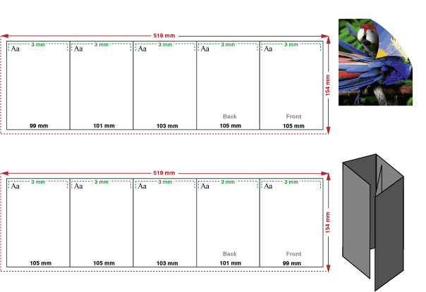 - Bei einem hochkantigen Wickelfalz musst Du bereits beim Erstellen auf die richtige Drehung achten. Wird Dein Wickelfalz-Faltblatt nach oben aufgeklappt, so musst Du die Innenseite auf den Kopf stellen.