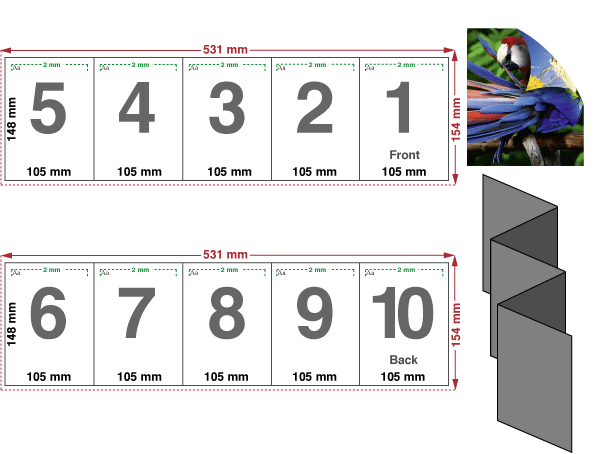 Faltblätter 10-Seiter, gefalzt auf DIN A6, Zickzackfalz