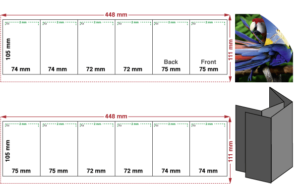 Faltblätter 12-Seiter, gefalzt auf DIN A7, Sonder-Wickelfalz
