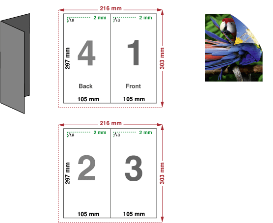 Wenn Du Dir nicht sicher bist, ob Dein Faltblatt richtig angelegt ist, ist es oft sehr hilfreich das Dokument auf dem eigenen Drucker einmal auszudrucken, wenn Du dann Innen- und Außenseite rückseitig aneinander legst, in der Orientierung, wie sie auch aus Deinem Drucker gekommen sind, sieht Du sofort ob Deine Seiten richtig gedreht sind.