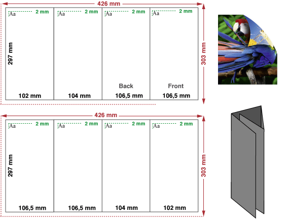 Wenn Du Dir nicht sicher bist, ob Dein Faltblatt richtig angelegt ist, ist es oft sehr hilfreich das Dokument auf dem eigenen Drucker einmal auszudrucken, wenn Du dann Innen- und Außenseite rückseitig aneinander legst, in der Orientierung, wie sie auch aus Deinem Drucker gekommen sind, sieht Du sofort ob Deine Seiten richtig gedreht sind.