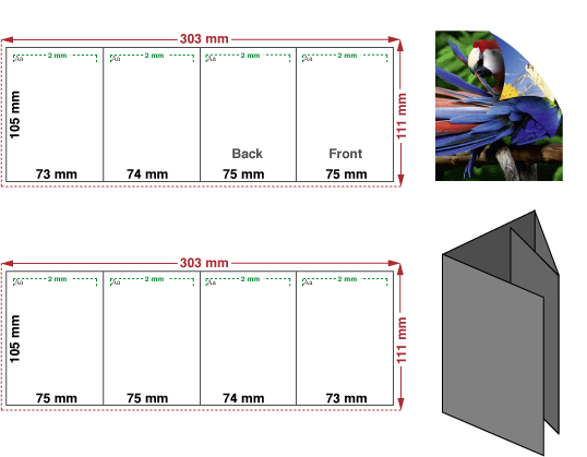 - Bei einem "normalen" Querformatfaltblatt, z.B. A4 auf DIN lang Wickelfalz quer ist Seite 1 ist die Außenseite und Seite 2 die Innenseite Deines Faltblattes. Beide Seiten müssen am Bildschirm lesbar sein (also nicht verdreht oder auf dem Kopf).