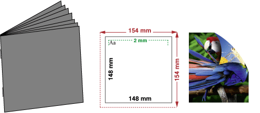 Texte solltest Du mind. 5mm vom Rand (Endformat) entfernt platzieren, da es beim Schneiden Toleranzen von 2-3 mm geben kann. Wenn Deine Texte mit ausreichender Entfernung vom Rand platziert sind, bist Du auf der sicheren Seite.