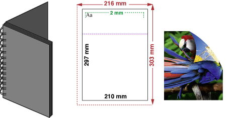 Texte solltest Du mind. 2mm vom Rand (Endformat) entfernt platzieren, da es beim Schneiden Toleranzen von 1-2 mm geben kann. Wenn Deine Texte mit ausreichender Entfernung vom Rand platziert sind, bist Du auf der sicheren Seite. Achtung! Bei Produkten mit Spiralbindung unbedingt 16 mm Abstand im Bund einhalten, sonst läuft der Text in die Spirale.
