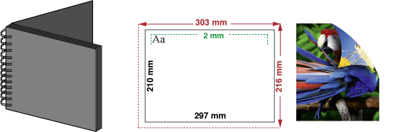 Texte solltest Du mind. 2mm vom Rand (Endformat) entfernt platzieren, da es beim Schneiden Toleranzen von 1-2 mm geben kann. Wenn Deine Texte mit ausreichender Entfernung vom Rand platziert sind, bist Du auf der sicheren Seite. Achtung! Bei Produkten mit Spiralbindung unbedingt 16 mm Abstand im Bund einhalten, sonst läuft der Text in die Spirale.